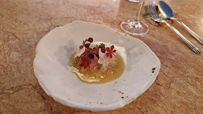 The kitchen shows off a careful, almost gentle hand with its ingredients—nothing feels overworked; the aim is always clarity and harmony. The cured mackerel was rich with a sweet undertone. The tomato dashi added a freshness, while the hazelnut added texture without overwhelming it. The main event was a giant 'Beef Wellington', which used the finest fillet cut aka chateaubriand. As expected, it was super tender. The pastry is crisp, the beef interior tender, and the black truffle and mushrooms added great depth; and that very rich black truffle and bone marrow sauce ties it together with its savory weight. It was easily the best Wellington I have encountered.